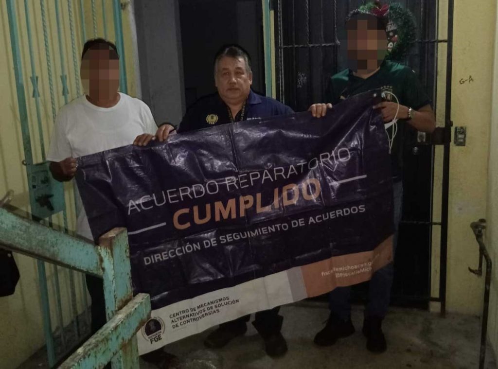 La Fiscalía General del Estado de Michoacán (FGE), a través del Centro de Mecanismos Alternativos de Solución de Controversias (CMASC), celebró un acuerdo reparatorio que permitió la restitución de un inmueble a su legítimo propietario, ubicado en el municipio de Lázaro Cárdenas.