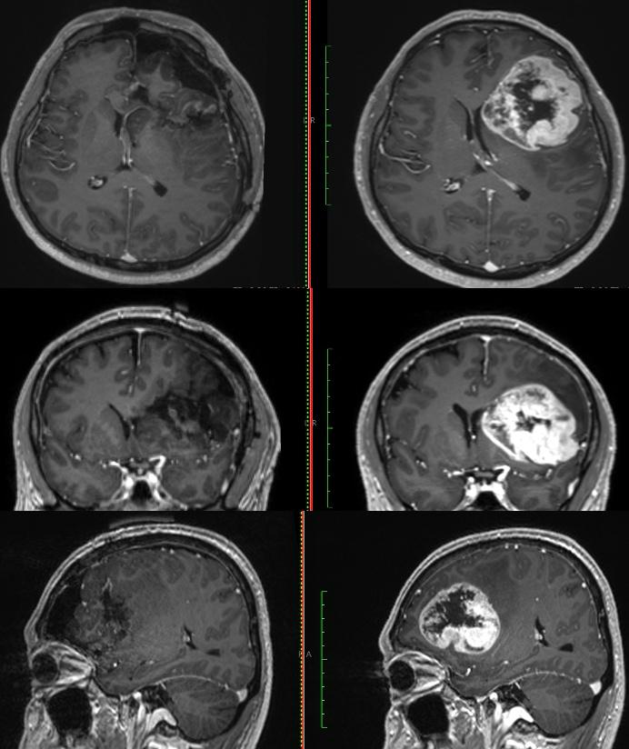“Se realizó tomografía de cráneo y, ante los hallazgos, se le practicó una resonancia magnética; posteriormente, se le detectó un tumor de características malignas en la región frontal premotora izquierda”, detalló.