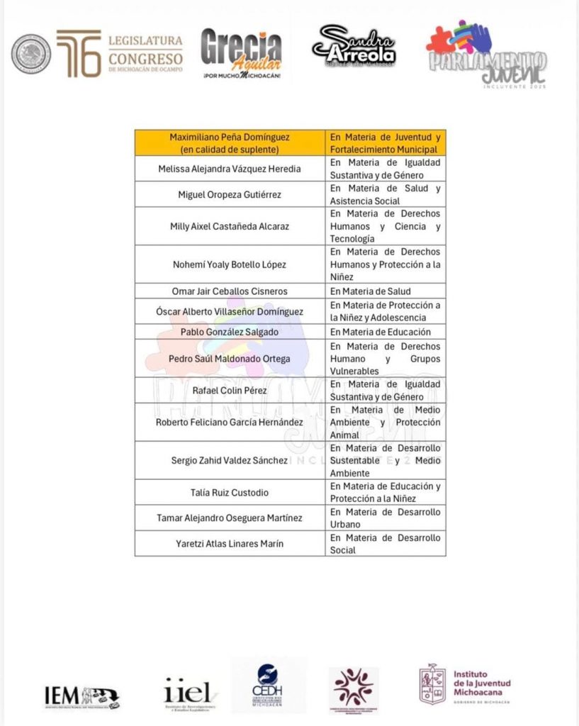 Grecia Aguilar da a conocer lista de seleccionados del Parlamento Juvenil Incluyente 2025