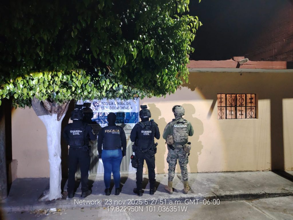 La Secretaria de Marina, a través de la Décima Sexta Zona Naval, en coadyuvancia con la Fiscalía General del Estado (FGE) y Secretaria de Seguridad y Protección Ciudadana (SSPC), como parte del Plan Michoacán por la Paz y la Justicia, informa que hoy, personal naval participó en una operación simultánea en cuatro cateos a diversos inmuebles, en el municipio de Álvaro Obregón, Michoacán.