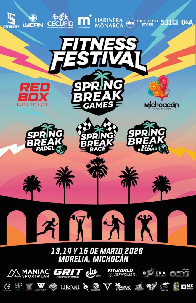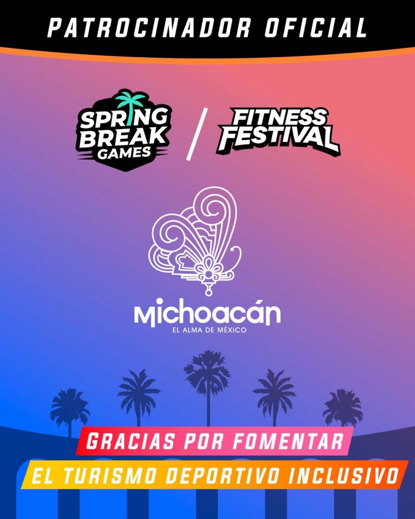 Michoacán será sede del Spring Break Games Fitness Festival 2026, la segunda competencia más importante a nivel nacional en su rubro, la cual se llevará a cabo del 13 al 15 de marzo, informó la Secretaría de Turismo de Michoacán (Sectur), dependencia dirigida por Roberto Monroy García.