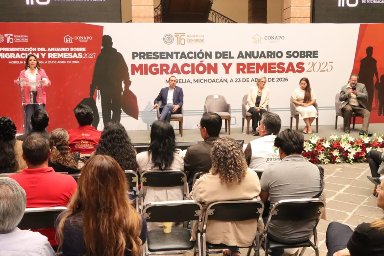 En el marco de la presentación del Anuario sobre Migración y Remesas 2025, actividad que se llevó a cabo en el patio del Palacio Legislativo del Congreso del Estado, la legisladora local, reconoció que, si bien aún hay mucho trabajo por realizar en esta materia, el Congreso de Michoacán legisla para fortalecer las políticas públicas emprendidas tanto por el Gobierno del Estado, como el Gobierno de la República, en favor de las y los migrantes.